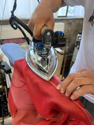 Our garments are all made responsibly with leftover fabrics from couture houses. By creating something new from excess materials, we reduce the impact on our planet. The selvedge of the fabric roll is often left visible, celebrating the beauty of the roll of fabric in its entirety while also reducing waste.